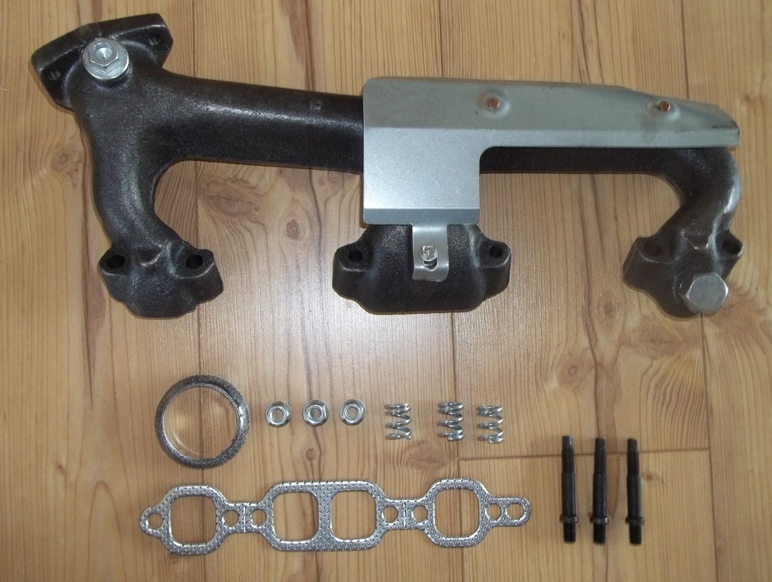 Abgaskrümmer links für die 5,0 und 5,7L Motoren. Inkl. Motorblock-Dichtung, Abgasrohr-Dichtung, Schrauben, Federn und Muttern für das Abgasrohr.