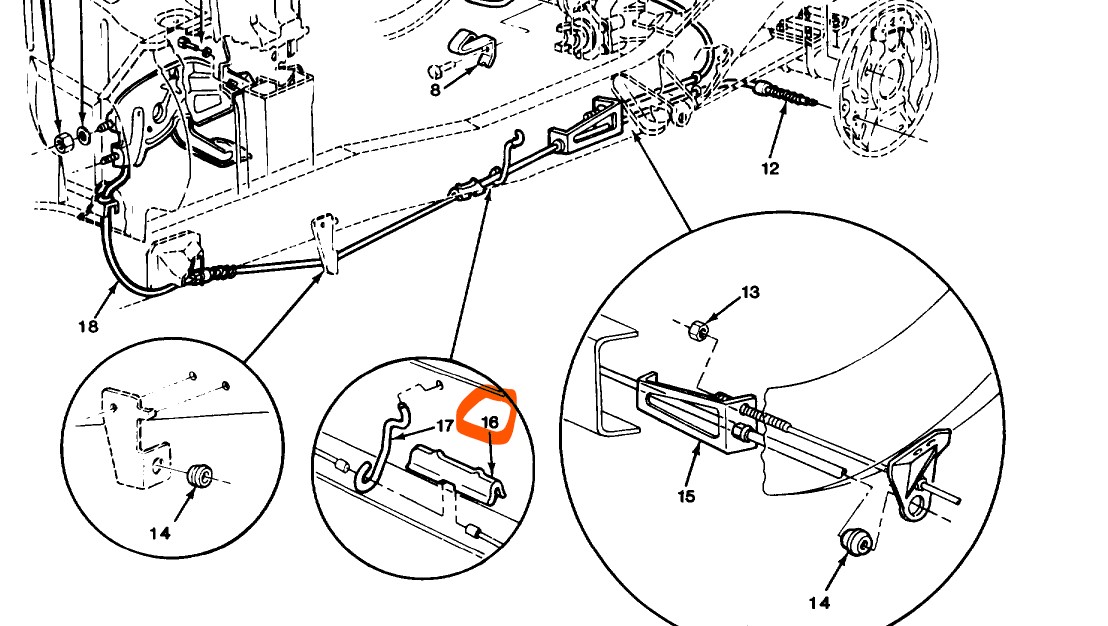 Verbindungsstück zwischen dem vorderen und hinteren Feststellbremsseil.